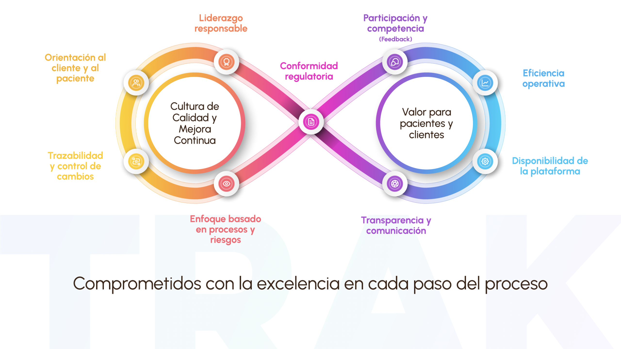 ● Orientación al cliente y al paciente: TRAK recibe y analiza las necesidades, expectativas y datos relevantes de sus clientes y pacientes, con el fin de impulsar mejoras en sus productos y servicios.